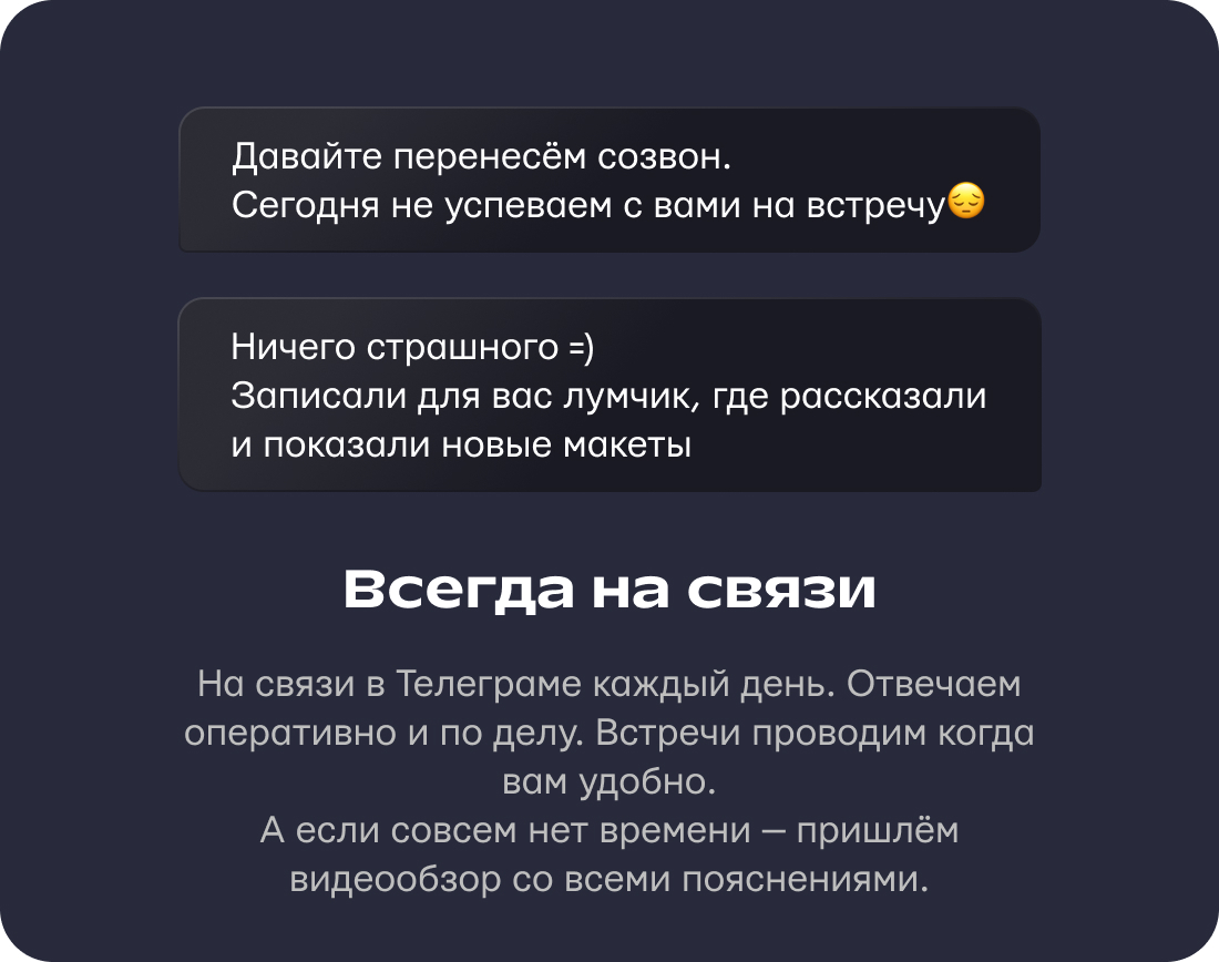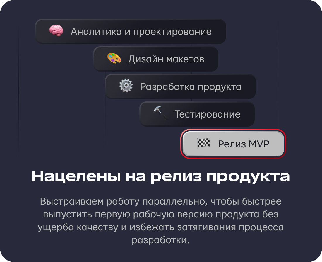 Сфокусированы на качестве и умеем укладываться в сроки так, чтобы результат опережал ожидания.